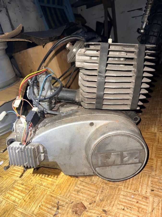 Motor na MZ TS 250/1, funkční, komprese dobrá, komplet s elektrikou a karburátorem + upravený výfuk, komprese dobrá.