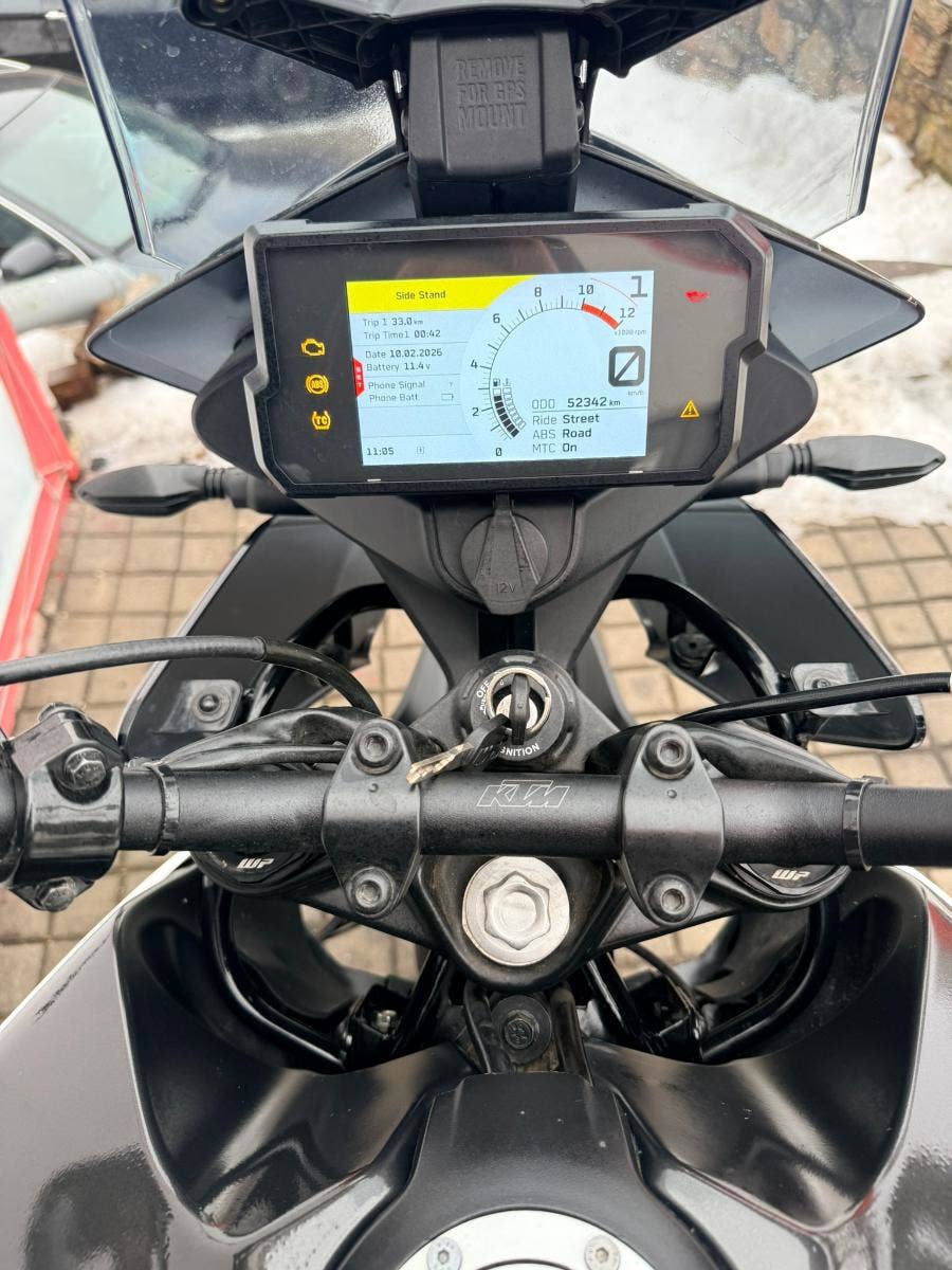 KTM 390 Adventure, r.v. 2022, 32 kW, najeto 52342 km, motorka v dobrém stavu, plně pojízdná, padací rámy, zvýšené plexi, nosiče kufrů.